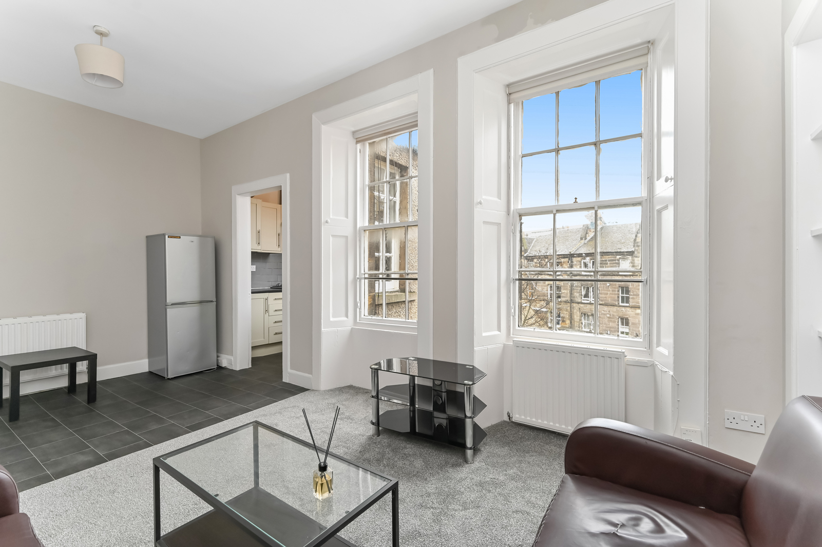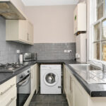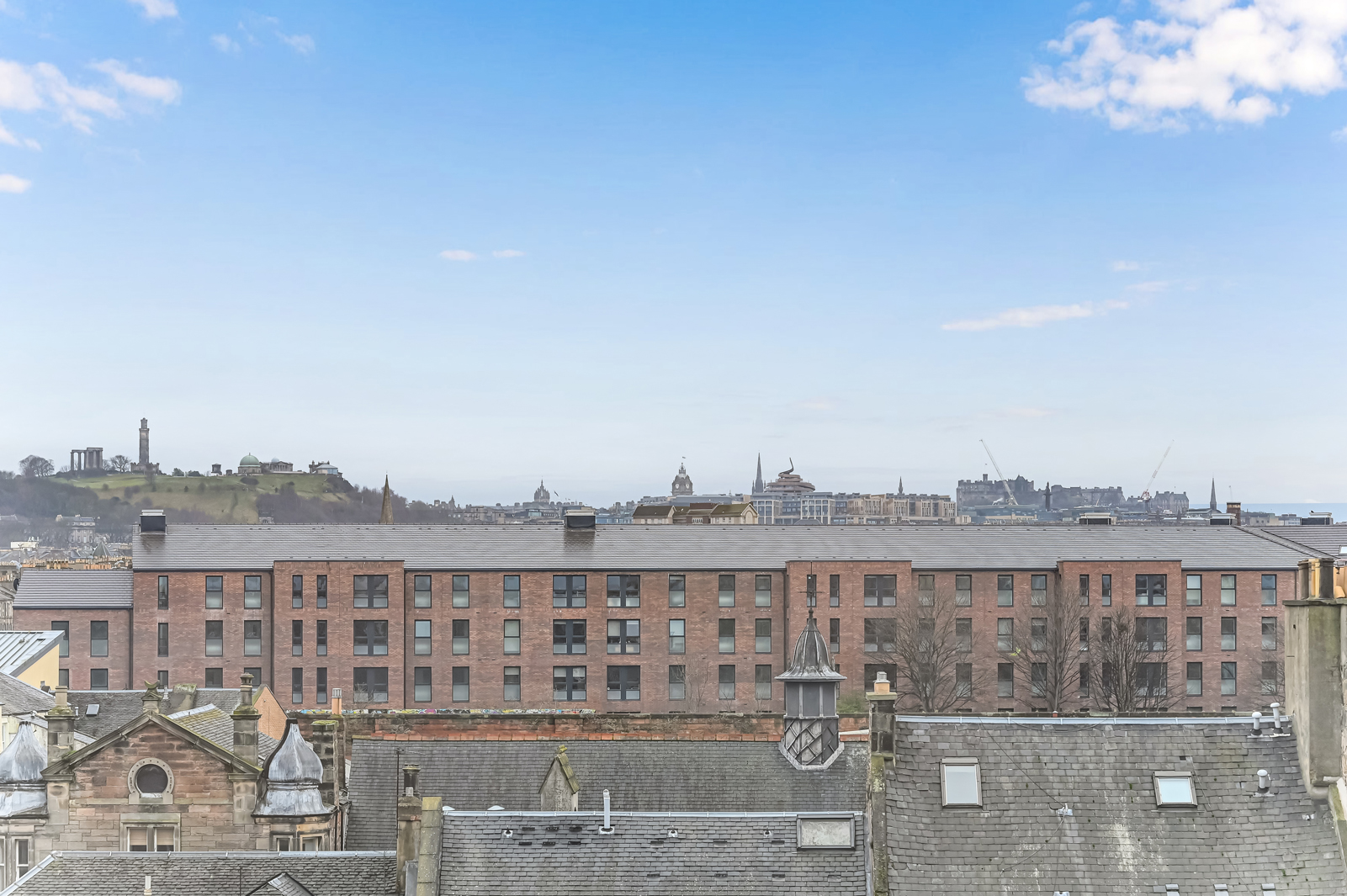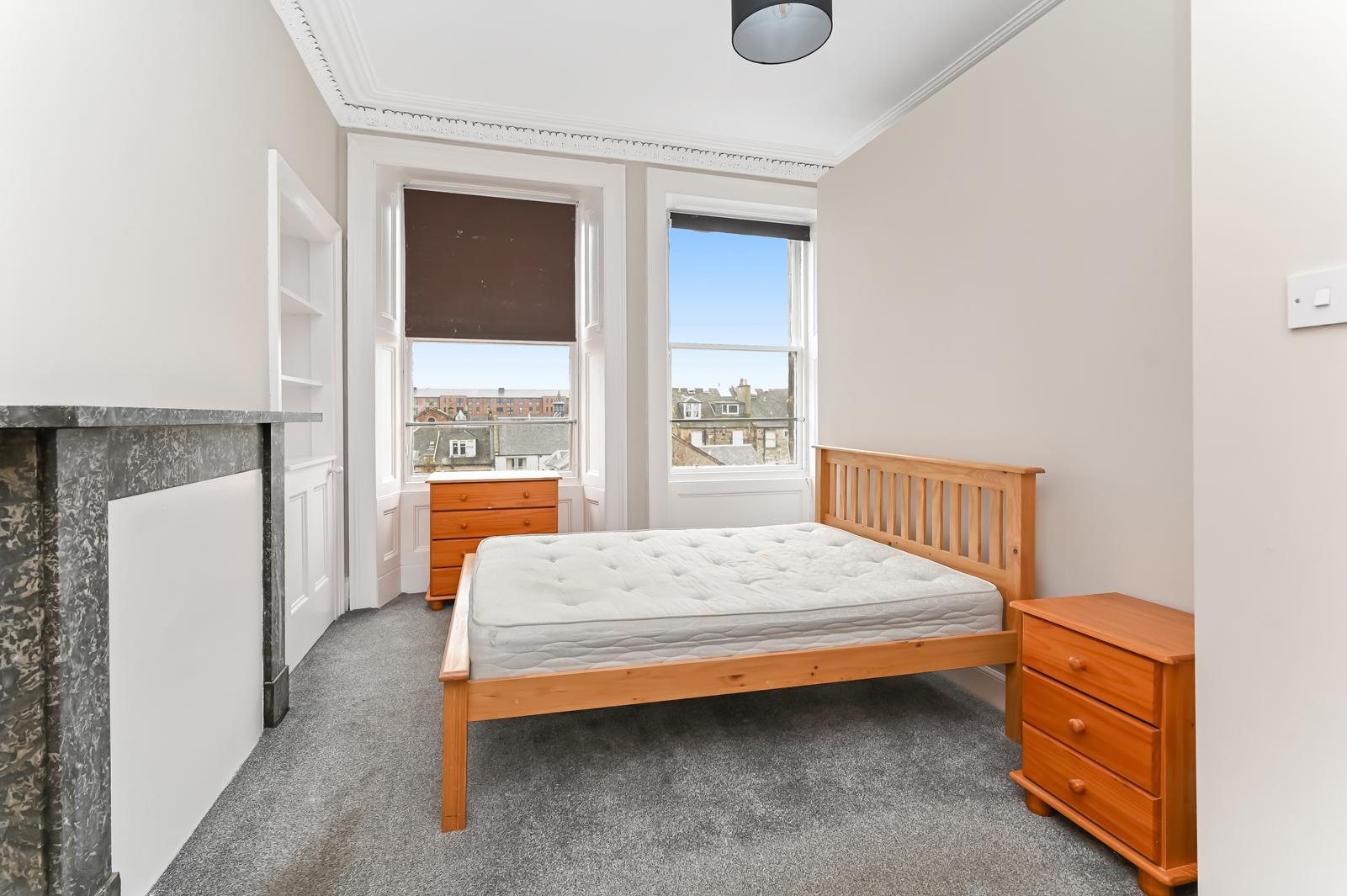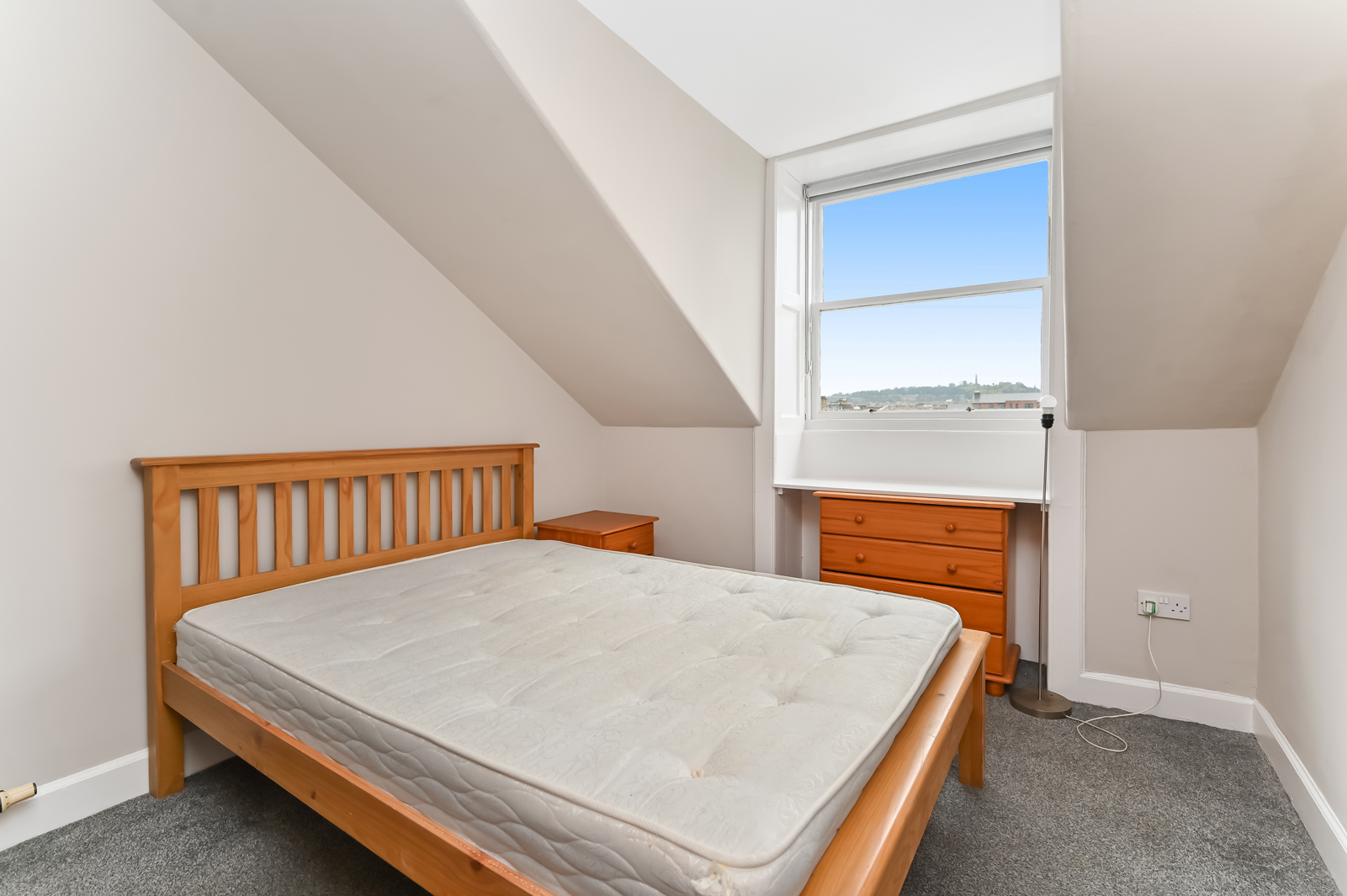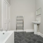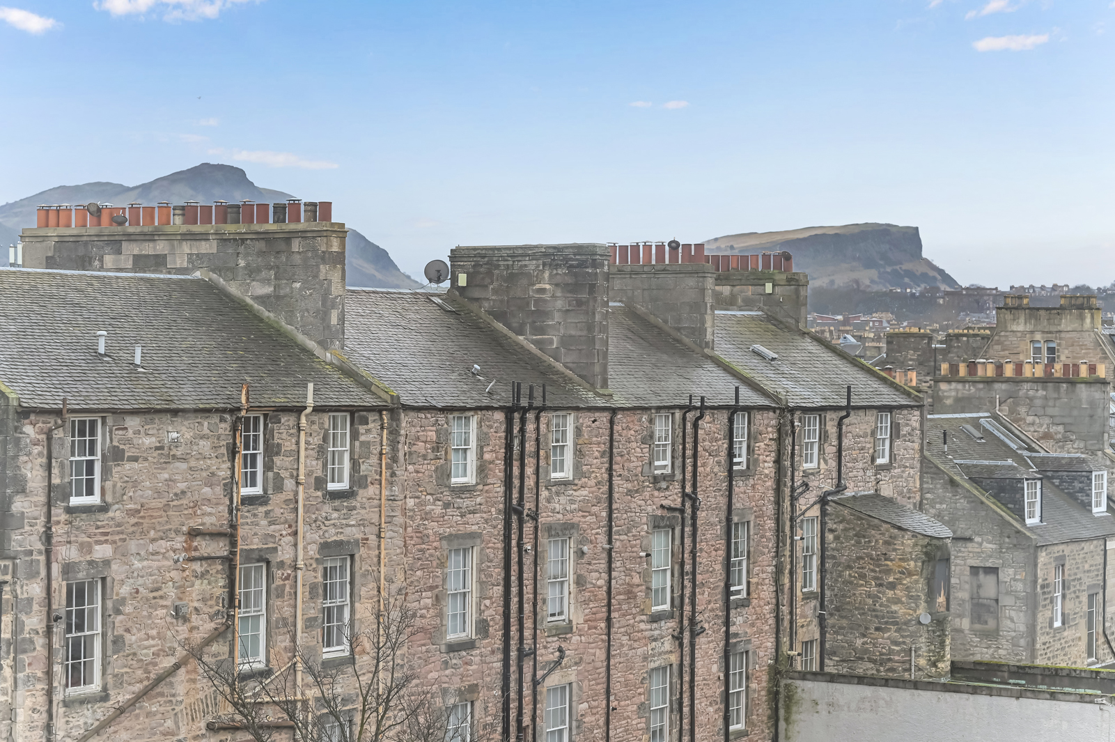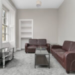 Upstairs the landing benefits from a skylight, Edinburgh press cupboard and gives access to the rest of the accommodation. A double bedroom with built in storage and a traditional fireplace is situated to the rear. To the front are two additional bedrooms, oner of which enjoys excellent views towards Arthurs Seat, Salisbury Crags, Carlton Hill, and Edinburgh Castle.Â
