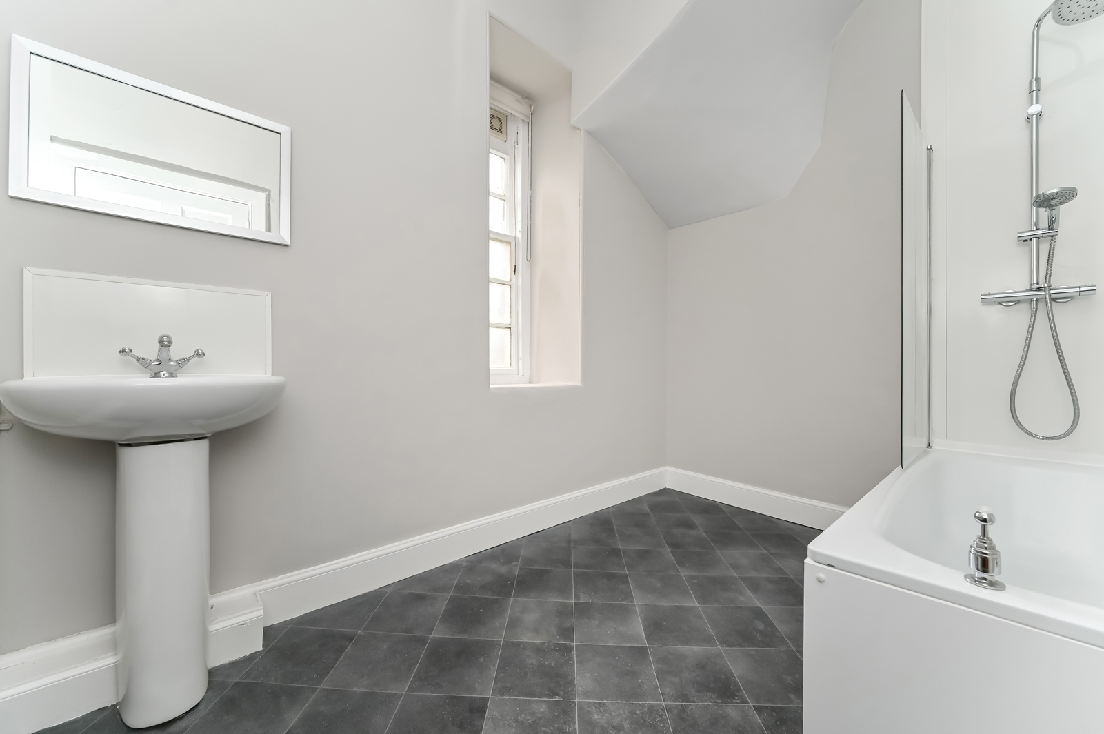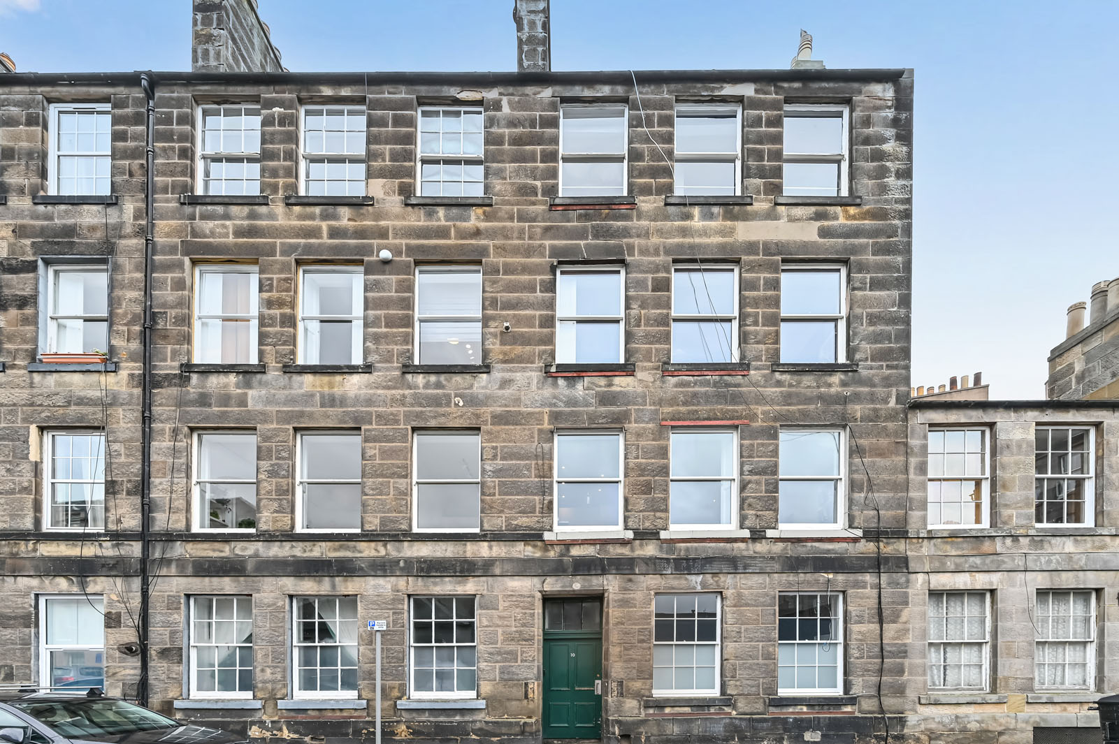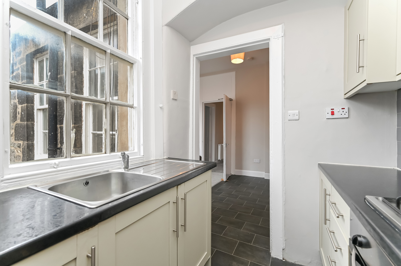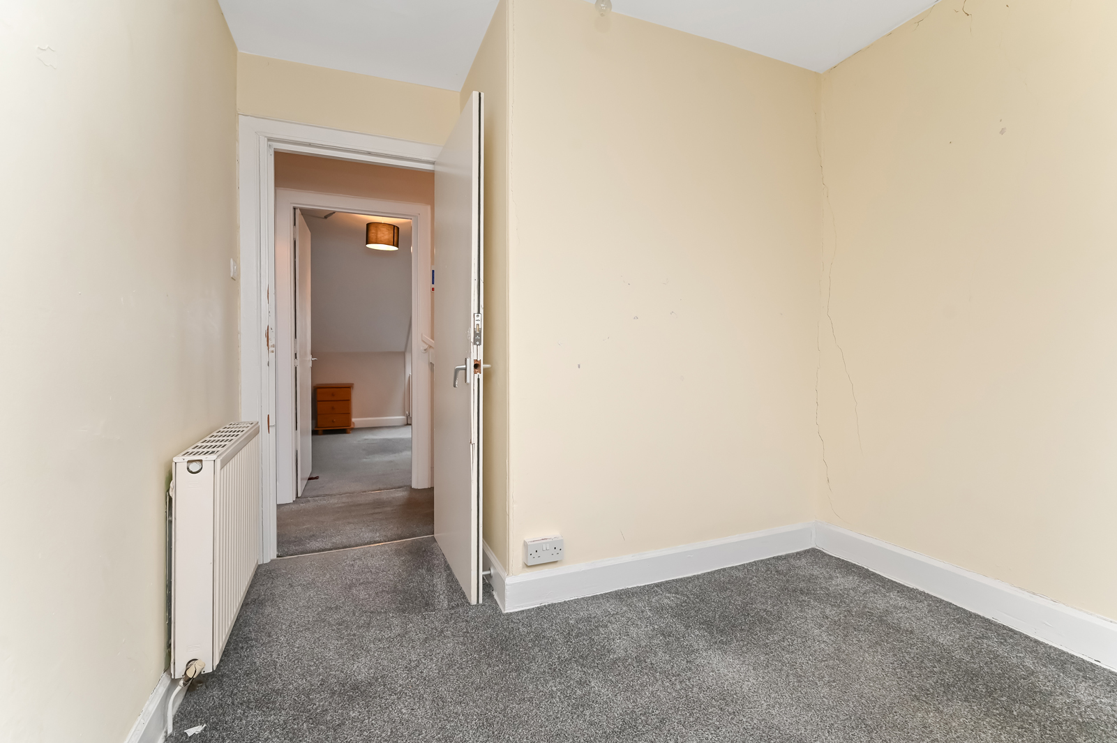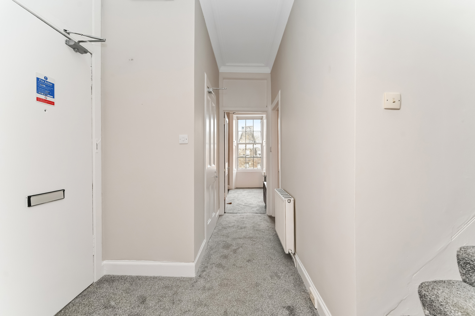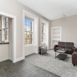 Upstairs the landing benefits from a skylight, Edinburgh press cupboard and gives access to the rest of the accommodation. A double bedroom with built in storage and a traditional fireplace is situated to the rear. To the front are two additional bedrooms, oner of which enjoys excellent views towards Arthurs Seat, Salisbury Crags, Carlton Hill, and Edinburgh Castle.Â