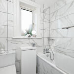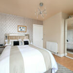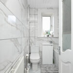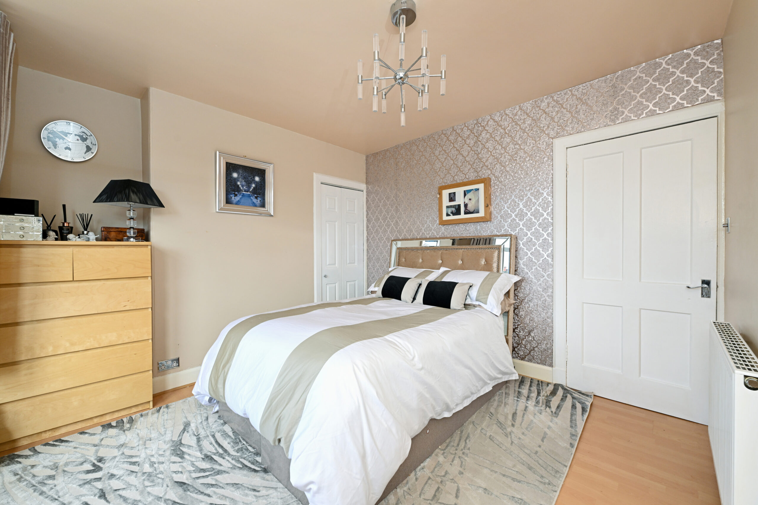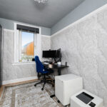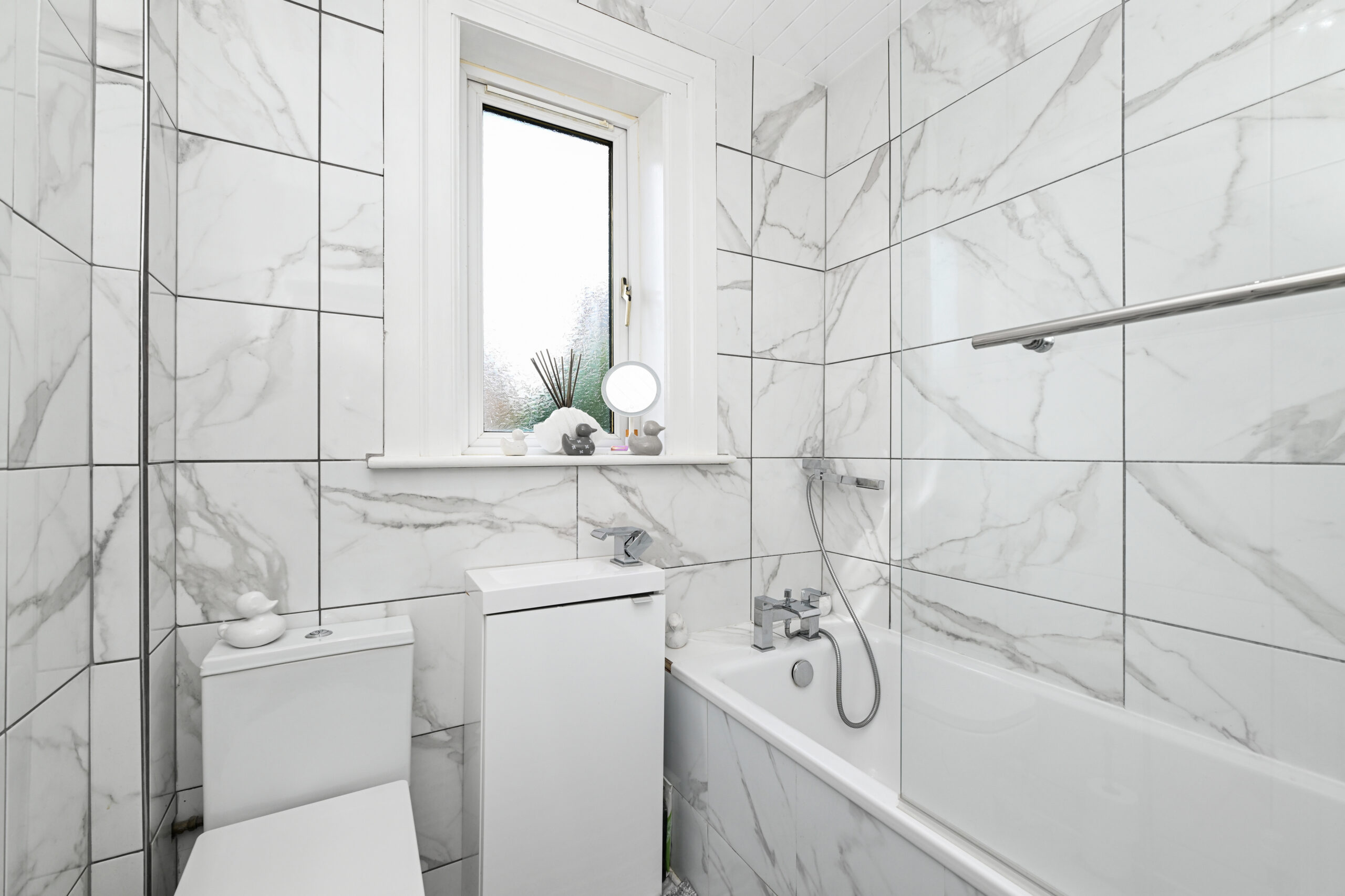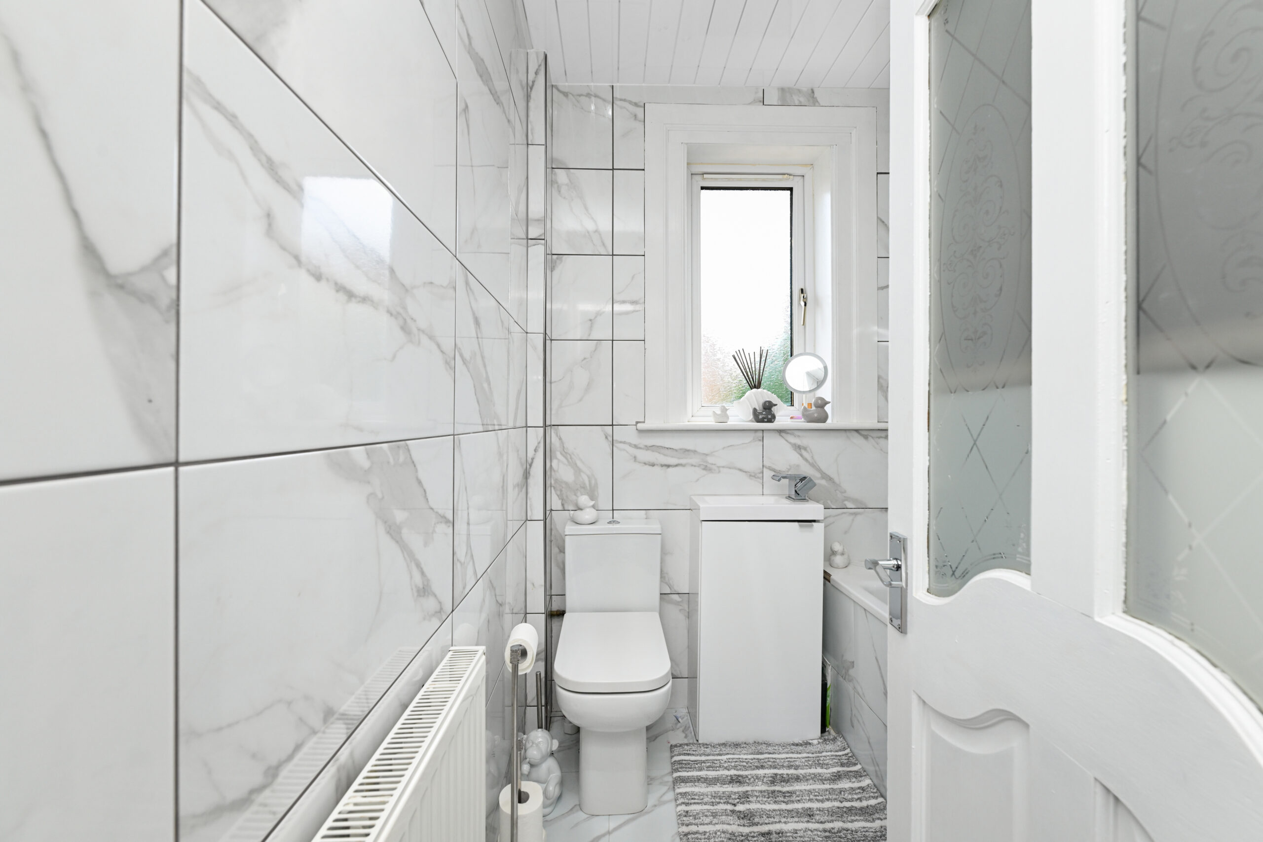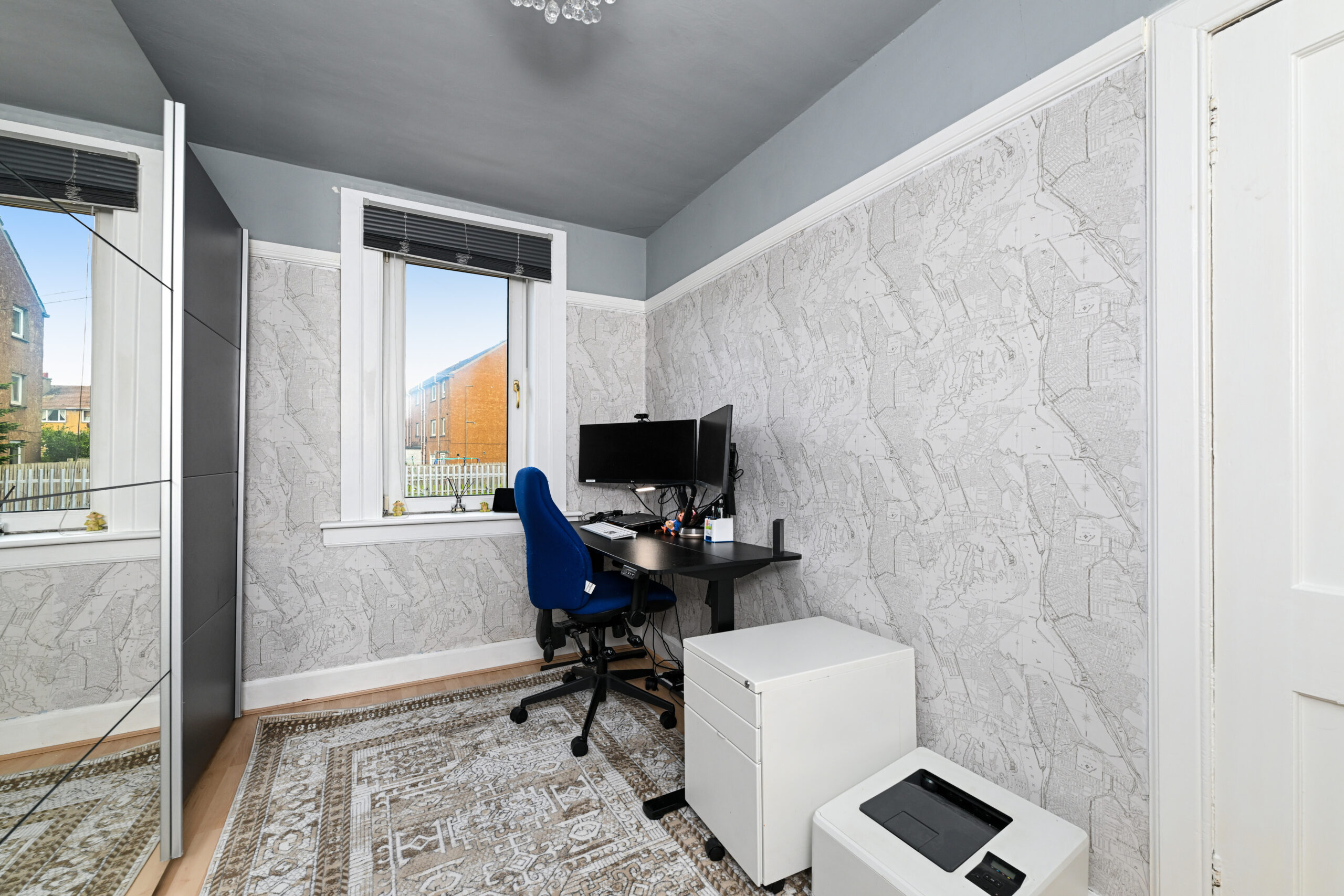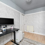 Upstairs the landing gives access to the rest of the accommodation and has a hatch to the attic. A well-proportioned double bedroom is situated to the front of the house and has a bay window and a built-in cupboard. The second double bedroom is to the rear and is currently utilised as a home office. The modern, rear facing bathroom completes the accommodation and has tiled walls, bath with an overhead mains powered shower, WC, and wash hand basin within a vanity unit.