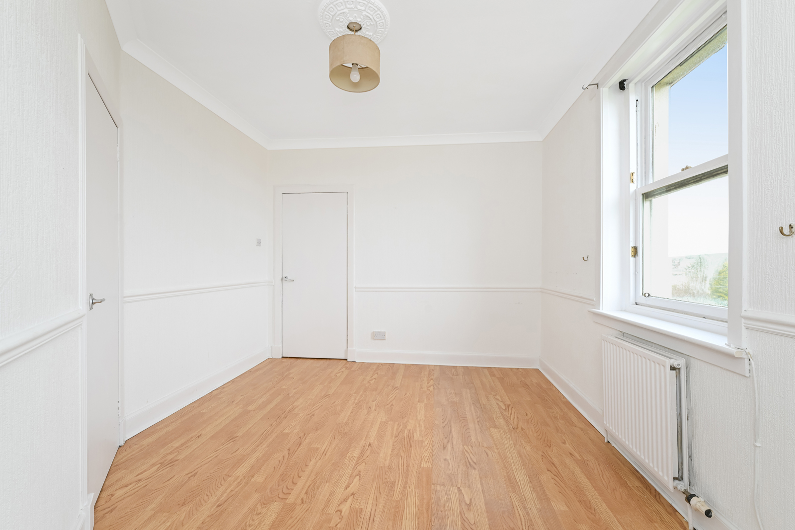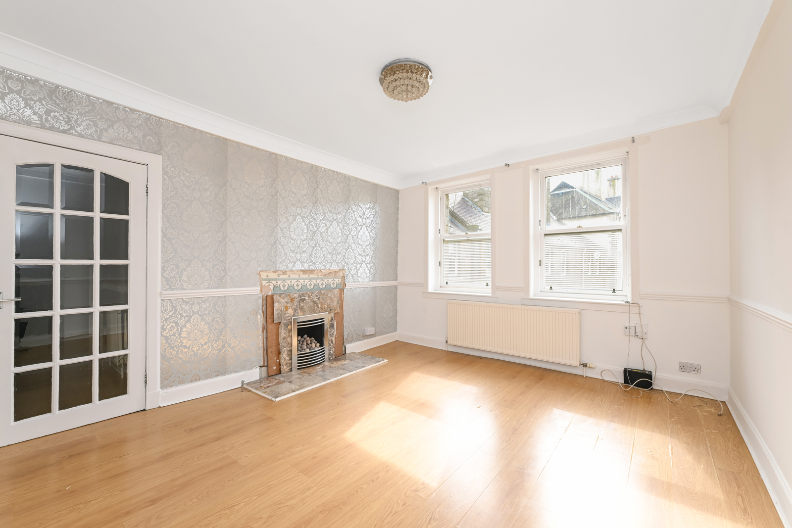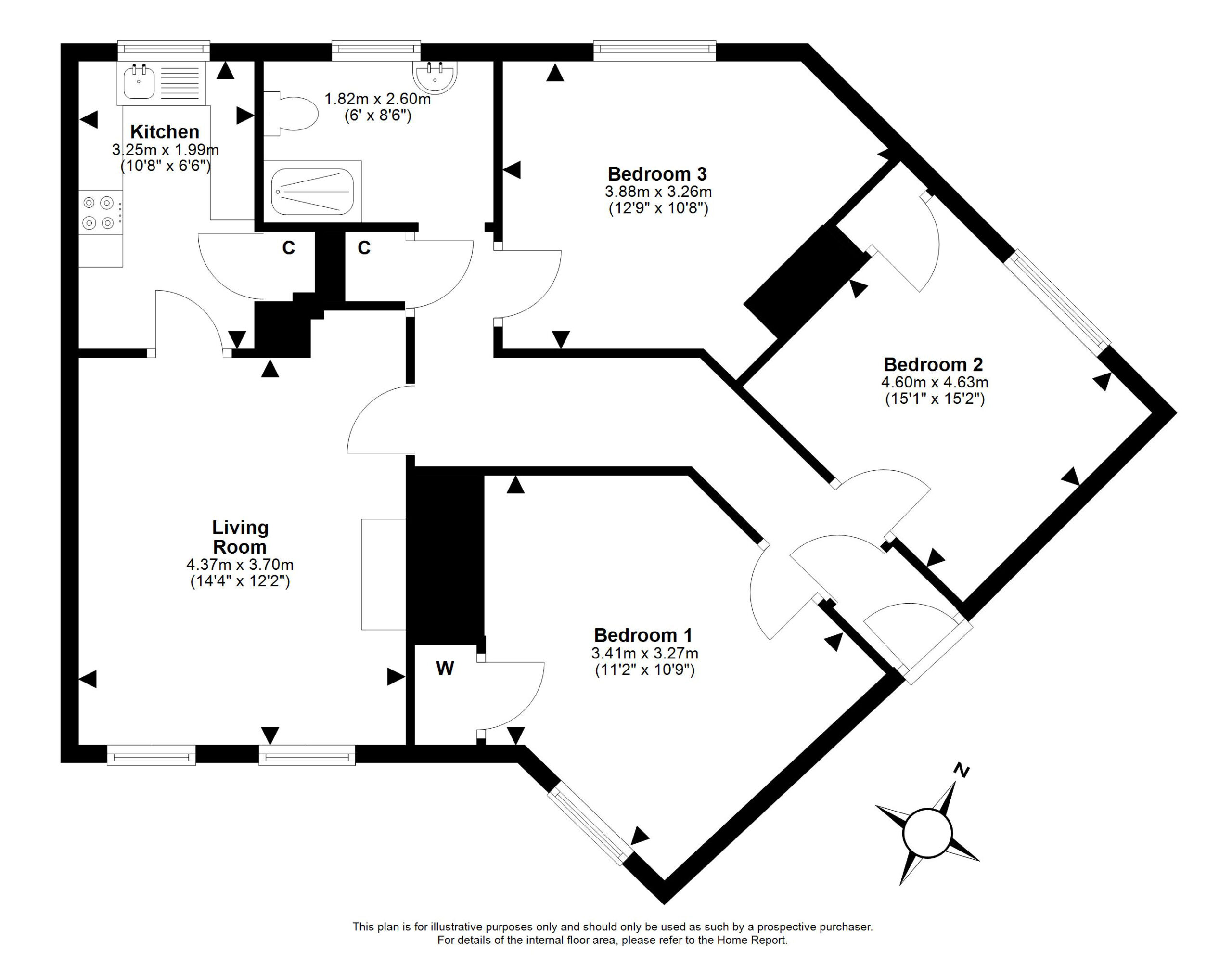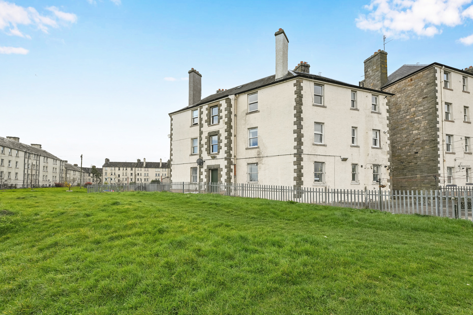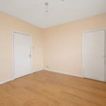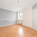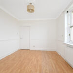 The flat opens to an entrance vestibule, which leads to the hallway with a built-in cupboard and an entry phone handset. The living room is front facing and has twin windows allowing in plentiful natural light, a gas-powered fireplace, built in cupboard and the kitchen off. The kitchen is situated to the rear of the flat and features base and wall units, integrated oven with gas hob, sink unit and pantry cupboard. A double bedroom is to the front and has a built-in wardrobe. To the rear are two further bedrooms, both of which have built in cupboards. Completing the accommodation is a family shower room to the rear with tiled walls and comprising of a mains powered shower unit, WC and a wash hand basin within vanity unit.